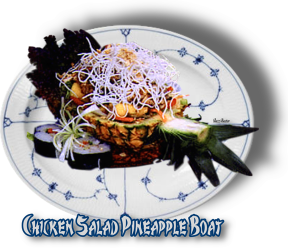 2 ripe pineapples, Cut lenthwise (Do not remove the leaves. Trimming them is OK) and hollowed out.